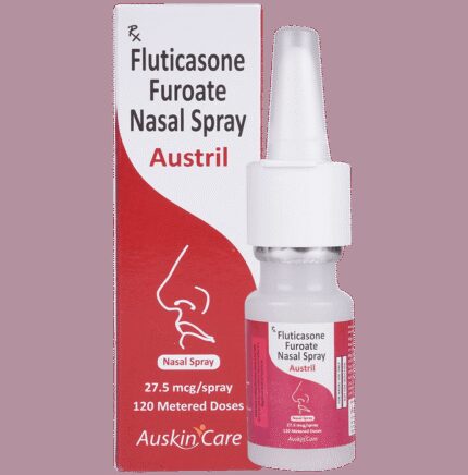 In Treatment of Sneezing and runny nose due to allergies Austril 27.5mcg Nasal Spray belongs to a group of medicines called corticosteroids. When it is sprayed into your nose it will reduce swelling and irritation and relieve symptoms such as blocked or stuffy nose, sneezing, and itchy or watery eyes. It is less likely than some other medicines to cause high blood pressure or changes in your sodium or potassium levels. This medicine works in your nose to block the effects of substances like pollen, dust mites, and mould that can trigger allergic reactions. This will make it easier for you to go about your daily activities without worrying so much about getting an allergic reaction. It may not work straight away, so use it regularly as prescribed to get the most benefit. If you see no improvement after a week, talk to your doctor.