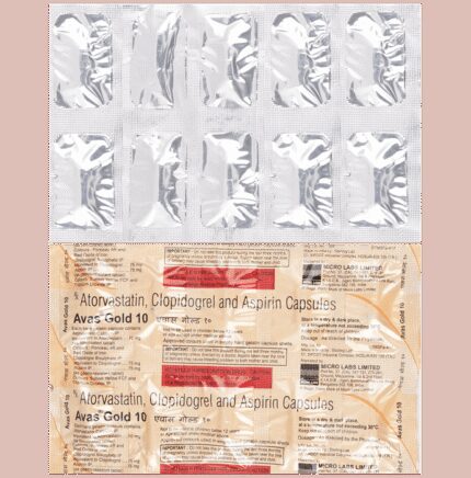 In Prevention of Heart attack Avas Gold 75mg/10mg/75mg Capsule is a combination medicine that is used to prevent heart attack. It contains Atorvastatin that works by reducing the amount of “bad” cholesterol (LDL) and raising the amount of “good” cholesterol (HDL) in your blood. High levels of cholesterol can cause your blood vessels to narrow (atherosclerosis). Lowering the amount of cholesterol reduces the chances of heart diseases and helps you remain healthier for longer.u003cbr>u003cbr>Besides, it also contains two blood thinners, Aspirin and Clopidogrel, that together prevent the formation of blood clots and also prevent the existing ones from growing bigger in size. Take it regularly and make appropriate lifestyle changes (such as eating healthy and staying active) to maximize the effectiveness of this medicine. Keep taking it even if you feel well.