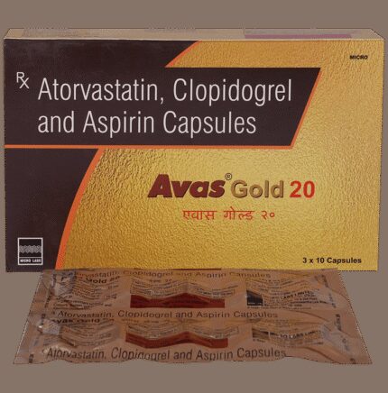In Prevention of Heart attack Avas Gold 75mg/20mg/75mg Capsule is a combination medicine that is used to prevent heart attack. It contains Atorvastatin that works by reducing the amount of “bad” cholesterol (LDL) and raising the amount of “good” cholesterol (HDL) in your blood. High levels of cholesterol can cause your blood vessels to narrow (atherosclerosis). Lowering the amount of cholesterol reduces the chances of heart diseases and helps you remain healthier for longer.u003cbr>u003cbr>Besides, it also contains two blood thinners, Aspirin and Clopidogrel, that together prevent the formation of blood clots and also prevent the existing ones from growing bigger in size. Take it regularly and make appropriate lifestyle changes (such as eating healthy and staying active) to maximize the effectiveness of this medicine. Keep taking it even if you feel well.