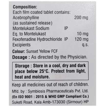 In Asthma Asthma is a condition in which your airways become narrow and as a result, breathing becomes difficult. Aventbro-FM Tablet SR works by relaxing the muscles of the airways and widens it. It also gives relief from congestion or stuffiness by loosening mucus and helping to cough out. This makes you breathe easy and gives relief from symptoms such as tightness in your chest, shortness of breath, wheezing and coughing. Regular exercise and yoga can help improve the symptoms of asthma in the long term, in addition to improving overall health.