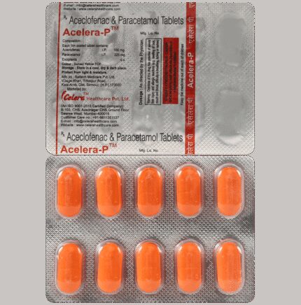 Acelera-P Tablet is a pain-relieving medicine. It is used to reduce pain and inflammation in conditions like rheumatoid arthritis, ankylosing spondylitis, and osteoarthritis. It may also be used to relieve muscle pain, back pain, toothache, or pain in the ear and throat. Acelera-P Tablet should be taken with or without food. You should take it regularly as advised by your doctor. Your doctor may change the dose and time between doses according to your pain level and your needs. Do not take more or use it for a longer duration than recommended by your doctor.Some of the common side effects of this medicine include nausea, vomiting, stomach pain, heartburn, and diarrhea. If any of these side effects bother you or do not go away with time, you should let your doctor know. Your doctor may help you with ways to reduce or prevent these side effects by prescribing an alternative medicine or adjusting the dose.Acelera-P Tablet may not be suitable for everybody. Before taking it, let your doctor know if you have any problems with your heart, kidneys, liver, or have stomach ulcers. To make sure it is safe for you, let your doctor know about all the other medicines you are taking. Pregnant and breastfeeding mothers should first consult their doctors before using Acelera-P Tablet.
