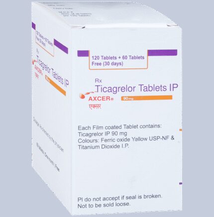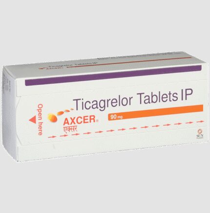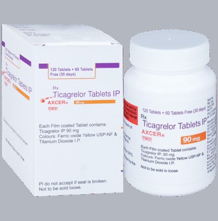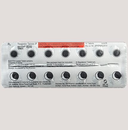 In Prevention of heart attack and stroke Axcer 90mg Tablet is an antiplatelet medicine or blood thinner. It prevents blood from clotting inside the veins and arteries, helping the blood flow freely around your body and preventing a heart attack or stroke (deep vein thrombosis or pulmonary embolism). To achieve maximum benefits, take this medicine regularly and make appropriate lifestyle changes. It is often prescribed with a low dose of aspirin, which also helps prevent blood from clotting.