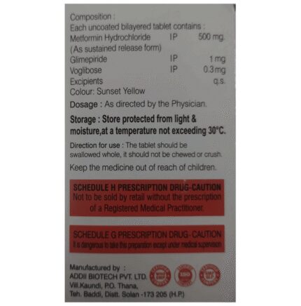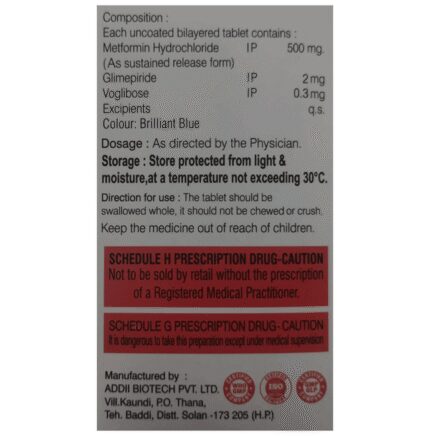 In Treatment of Type 2 diabetes mellitus Axglm-MV 103 Tablet SR is a medicine that helps to control high blood glucose (sugar) levels. It helps to slow down the breaking down of food in our intestine to simple glucose (sugar), thereby decreasing the rise in blood glucose levels after meals. It also helps get rid of extra glucose from your body through urine. Lowering blood glucose levels is an essential part of managing diabetes. If you can control the level, you will reduce the risk of getting any of the serious complications of diabetes such as kidney damage, eye damage, nerve problems and loss of limbs. u003cbr>Axglm-MV 103 Tablet SR will reduce the risk of dying from cardiovascular disease if you have type 2 diabetes and already have cardiovascular disease. Taking this medicine regularly along with proper diet and exercise will help you live a normal, healthy life. You should keep using it for as long as it is prescribed because it is protecting your future health.
