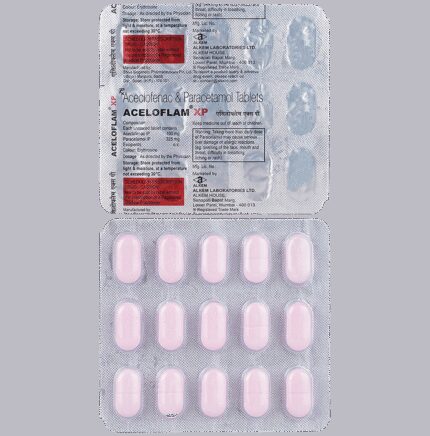 Aceloflam XP 100 mg/325 mg Tablet is a pain-relieving medicine. It is used to reduce pain and inflammation in conditions like rheumatoid arthritis, ankylosing spondylitis, and osteoarthritis. It may also be used to relieve muscle pain, back pain, toothache, or pain in the ear and throat. Aceloflam XP 100 mg/325 mg Tablet should be taken with or without food. You should take it regularly as advised by your doctor. Your doctor may change the dose and time between doses according to your pain level and your needs. Do not take more or use it for a longer duration than recommended by your doctor.Some of the common side effects of this medicine include nausea, vomiting, stomach pain, heartburn, and diarrhea. If any of these side effects bother you or do not go away with time, you should let your doctor know. Your doctor may help you with ways to reduce or prevent these side effects by prescribing an alternative medicine or adjusting the dose.Aceloflam XP 100 mg/325 mg Tablet may not be suitable for everybody. Before taking it, let your doctor know if you have any problems with your heart, kidneys, liver, or have stomach ulcers. To make sure it is safe for you, let your doctor know about all the other medicines you are taking. Pregnant and breastfeeding mothers should first consult their doctors before using Aceloflam XP 100 mg/325 mg Tablet.