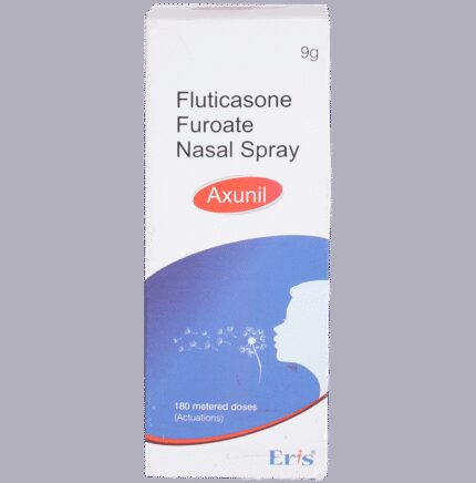 In Treatment of Sneezing and runny nose due to allergies Axunil Nasal Spray belongs to a group of medicines called corticosteroids. When it is sprayed into your nose it will reduce swelling and irritation and relieve symptoms such as blocked or stuffy nose, sneezing, and itchy or watery eyes. It is less likely than some other medicines to cause high blood pressure or changes in your sodium or potassium levels. This medicine works in your nose to block the effects of substances like pollen, dust mites, and mould that can trigger allergic reactions. This will make it easier for you to go about your daily activities without worrying so much about getting an allergic reaction. It may not work straight away, so use it regularly as prescribed to get the most benefit. If you see no improvement after a week, talk to your doctor.