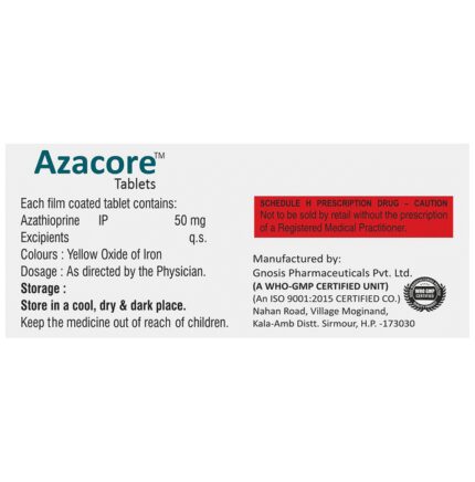 In Prevention of organ rejection in transplant patients Azacore Tablet is an immunosuppressive agent that lowers your immune response and reduces the chance of your body attacking the transplanted organ. Organ rejection happens when your immune system treats the new organ as an invader and attacks it. This medicine may be used in combination with other medicines to suppress the immune system and help your body accept the new organ.