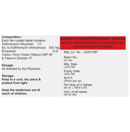 In Treatment of Bacterial infections Azamra 500mg Tablet is an antibiotic medicine that can be used to treat many different infections caused by bacteria. These include infections of the blood, brain, lungs, bones, joints, urinary tract, stomach, and intestines. It can also be used to treat sexually transmitted diseases. It stops the growth of the bacteria causing the infection and clears the infection. Take it for as long as prescribed by the doctor and avoid skipping doses. This will make sure that all bacteria are killed and they do not become resistant.