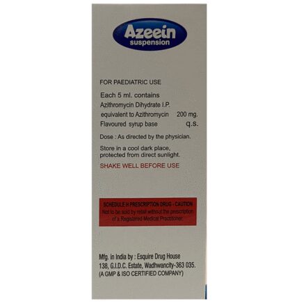 In Treatment of Bacterial infections Azeein Oral Suspension is an antibiotic medicine that can be used to treat many different infections caused by bacteria. These include infections of the blood, brain, lungs, bones, joints, urinary tract, stomach, and intestines. It can also be used to treat sexually transmitted diseases. It stops the growth of the bacteria causing the infection and clears the infection. Take it for as long as prescribed by the doctor and avoid skipping doses. This will make sure that all bacteria are killed and they do not become resistant.