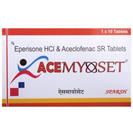 Acemyoset Tablet SR is a combination medicine used in the treatment of pain due to muscle spasm. It improves the movement of muscles and provides relief from pain and discomfort associated with muscle spasms. Acemyoset Tablet SR should be taken with food. This will prevent you from getting an upset stomach. You should take it regularly as advised by your doctor. Do not take more or use it for a longer duration than recommended by your doctor.Some of the common side effects of this medicine include nausea, vomiting, stomach pain, loss of appetite, diarrhea, and dizziness. If any of these side effects bother you or do not go away with time, you should let your doctor know. Your doctor may help with ways to reduce or prevent these side effects.The medicine may not be suitable for everybody. Before taking it, let your doctor know if you have any problems with your heart, kidneys, and liver. To make sure it is safe for you, let your doctor also know all the other medicines you are taking. Pregnant and breastfeeding mothers should first consult their doctors before using the medicine.