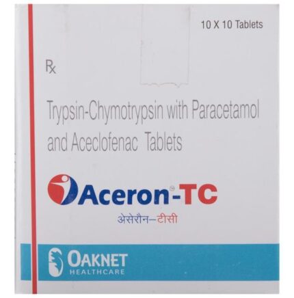 Aceron TC Tablet is a pain relieving medicine. It is used to treat pain and inflammation in conditions like rheumatoid arthritis, ankylosing spondylitis, and osteoarthritis. It may also be used to relieve muscle pain, back pain, toothache, or pain in the ear and throat. Aceron TC Tablet should be taken with food. This will prevent you from getting an upset stomach. The dose and duration will depend on what you are taking it for and how well it helps your symptoms. You should take it as advised by your doctor. Do not take more or use it for longer duration than recommended by the doctor.The most common side effects of this medicine include nausea, vomiting, heartburn, stomach pain, and indigestion. If any of these side effects do not resolve with time or get worse, you should let your doctor know. Your doctor may be able to suggest ways of preventing or reducing them.Before taking it, you should let your doctor know if you have a history of ulcer or bleeding in your stomach, high blood pressure, or have any problems with your heart, kidneys, or liver. Let your doctor also know about all the other medicines you are taking to make sure it is safe for you.Pregnant or breastfeeding women should consult their doctor before starting treatment. You should also avoid drinking alcohol while you are taking this medicine, as alcohol can cause excessive drowsiness.