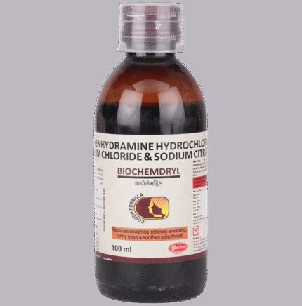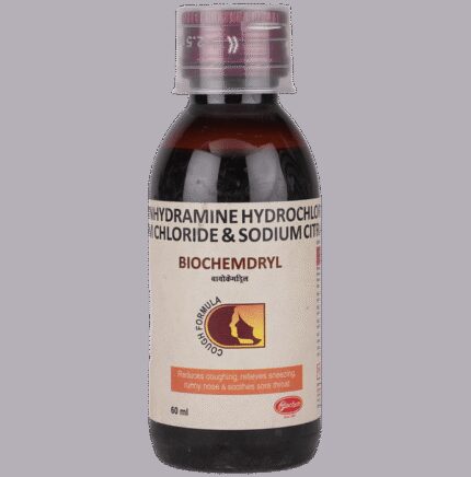 In Cough Biochemdryl Syrup gives relief from cough by loosening thick mucus and making it easier to cough it out. It also makes it easier for air to move in and out of your airways. This reduces the frequency of coughing and makes you feel better. Biochemdryl Syrup also relieves allergy symptoms like watery eyes, sneezing, runny nose or throat irritation. Along with medications, drink enough lukewarm water and gargle with warm salt water to ease the symptoms.