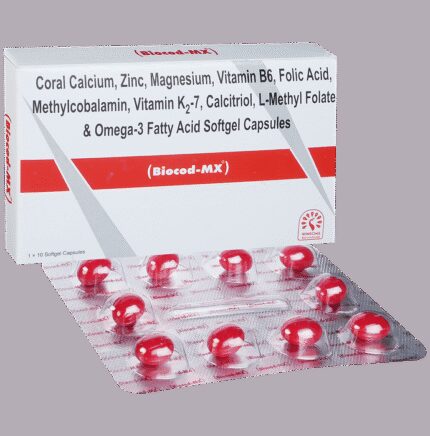 In Nutritional deficiencies Biocod-MX Softgel Capsule is a nutritional supplement that helps in boosting body energy levels and speedy recovery. It has antioxidants that reduce the harmful effects of problems related to the heart, liver or muscles. This combination contains other vitamins and minerals that help in strengthening the immune system, improve metabolism of the body and aid in the proper functioning of the nervous system. Taking Biocod-MX Softgel Capsule improves general health and enhances the quality of life.