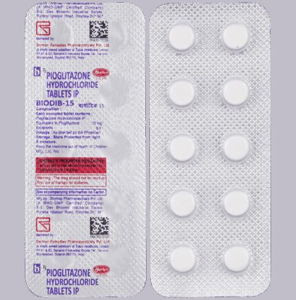 Biodib 15 Tablet is a medicine used to treat type 2 diabetes mellitus in adults. It helps control blood sugar