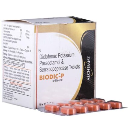 In Pain relief Biodic-P Tablet is a combination of medicines that is used for short term relief of pain, inflammation and swelling. It inhibits release of those chemical messengers in the brain that tell us that we have pain. It effectively relieves back pain, earache, throat pain, toothache, periods pain and pain due to arthritis too.u003cbr>Take Biodic-P Tablet as prescribed by the doctor to get the most benefit. Do not take more or for longer than needed as that can be dangerous. In general, you should take the lowest dose that works, for the shortest possible time. This will help you to go about your daily activities more easily and have a better, more active, quality of life.