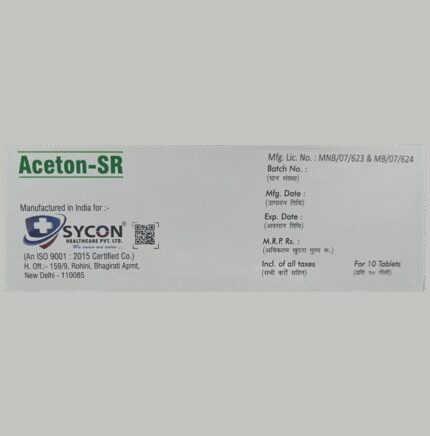 Aceton-SR Tablet is a pain-relieving medicine. It alleviates pain and inflammation in conditions like rheumatoid arthritis, ankylosing spondylitis, and osteoarthritis. Aceton-SR Tablet should be taken in the dose and duration as advised by your doctor. It should be taken with food or milk to prevent stomach upset. Taking the medicine regularly at the right times increases its effectiveness. It is important to keep taking the medicine regularly until your doctor tells you it is safe to stop.Vomiting, stomach pain, nausea, and indigestion are some of the common side effects of taking this medicine. It may also cause dizziness, drowsiness, or visual disturbances. Your doctor may regularly monitor your kidney function, liver function, and levels of blood components if you are taking this medicine for long-term treatment. Long-term use may lead to serious complications such as stomach bleeding and kidney problems. Aceton-SR Tablet is not recommended if you are pregnant or breastfeeding.