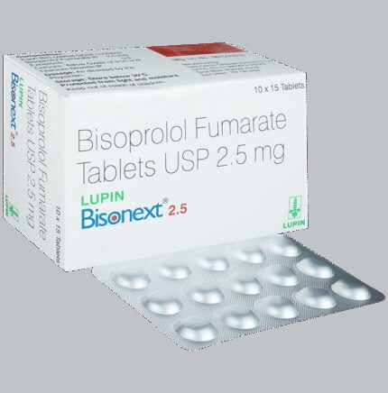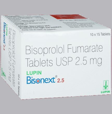 In Treatment of Hypertension (high blood pressure) Bisonext 2.5mg Tablet blocks the effects of some chemicals on your heart and blood vessels. It slows down your heart rate and helps the heart to beat with less force. This lowers your blood pressure and helps in reducing your risk of having a stroke, a heart attack, other heart problems, or kidney problems in the future. This medicine needs to be taken regularly to be effective, so keep taking it even if you feel well. Do not stop without talking to your doctor.