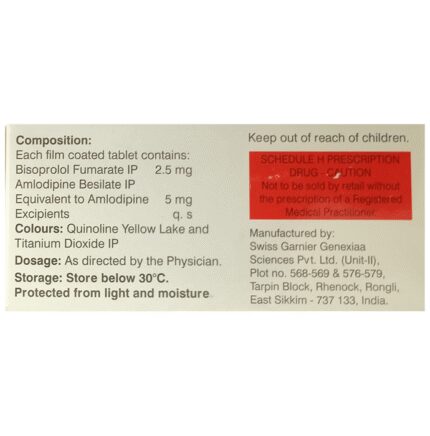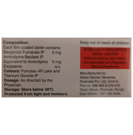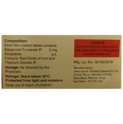 In Treatment of Hypertension (high blood pressure) Bisomine 5mg Tablet blocks the effects of some chemicals on your heart and blood vessels. It slows down your heart rate and helps the heart to beat with less force. This lowers your blood pressure and helps in reducing your risk of having a stroke, a heart attack, other heart problems, or kidney problems in the future. This medicine needs to be taken regularly to be effective, so keep taking it even if you feel well. Do not stop without talking to your doctor.