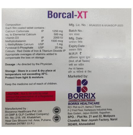 In Nutritional deficiencies Borcal-XT Tablet is a nutritional supplement that is used to prevent or treat low blood calcium levels in people who do not get enough calcium from their diets. It improves the level of calcium in the body. This helps keep your bones strong and healthy and reduce the risk of any bone disorders like osteoporosis. Calcium is also necessary for normal functioning of nerves, cells, muscle and heart. This combination contains other vitamins and minerals that help in strengthening the immune system, improve metabolism of the body and aid in the proper functioning of the nervous system. Taking Borcal-XT Tablet improves general health and enhances the quality of life.