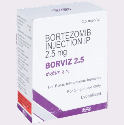Marketer:Intas Pharmaceuticals Ltd,Composition:Bortezomib (2.5mg), medicine_typedrugs,Packaging Detail:vial of 1 Injection,          Package:Vial,Qty:1,Product Form:Injection, prescription_required:Prescription