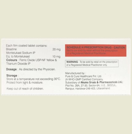 In Treatment of Allergic conditions Breathkast-BL Tablet provides relief from allergic symptoms such as blocked or runny nose, sneezing and itchy or watery eyes caused by seasonal hay fever (allergic rhinitis), seasonal allergies, and allergies. It works by reducing certain substances in the body that are responsible for the allergic symptoms. Breathkast-BL Tablet reduces swelling in the airways and gives relief from the symptoms of asthma.