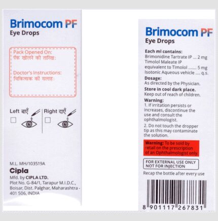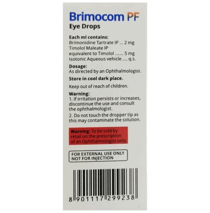 In Treatment of Glaucoma Glaucoma is an eye disease that damages the optic nerve which is essential for proper vision. This damage is often caused by an abnormally high pressure in the eye. Brimocom PF Eye Drop is used to reduce swelling and pressure inside the eye. This helps prevent complications of glaucoma such as blindness and improves the vision. This medicine may be used alone or with other eye drops. Glaucoma cannot be prevented. Frequent monitoring, regular checkups can help detect the disease in its early stages.