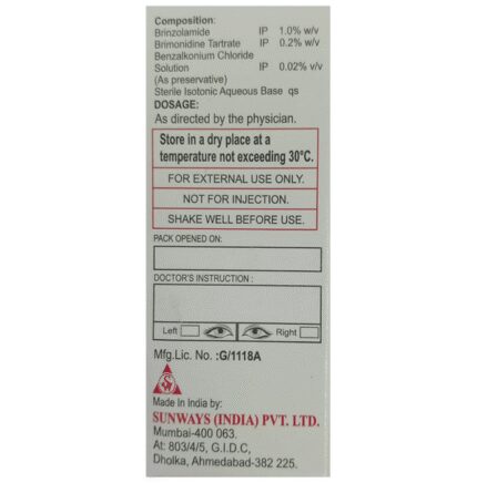 In Ocular hypertension Brio Eye Drop belongs to a group of medicines called carbonic anhydrase inhibitors. It is used to reduce pressure in your eyes. If the pressure in your eye is too high, it can damage your sight. You should only use it in the affected eye and take it regularly as prescribed by your doctor. If you stop taking it, the pressure in your eye will not be controlled. This could lead to a loss of sight.
