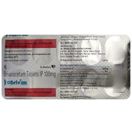 In Epilepsy/Seizures Briv + 100 Tablet belongs to a group of medicines called anticonvulsants (or anti-epileptics). It works by slowing down electrical signals in the brain which cause seizures (fits). This medicine can be used to control the various types of seizures—myoclonic, partial-onset, and primary generalized tonic-clonic (or grand mal). It can also help reduce symptoms such as confusion, uncontrollable jerking movements, loss of awareness, and fear or anxiety. u003cbr>u003cbr>The medicine can allow you to do some activities that you would otherwise be forbidden or scared to do (such as swimming and driving). It can take a few weeks for this medicine to work (because the dose has to be increased slowly) and during this time you may still have seizures. You should continue taking it even if you feel well and are not having any seizures. Missing doses may trigger a seizure. Do not stop using this medicine until your doctor advises you.