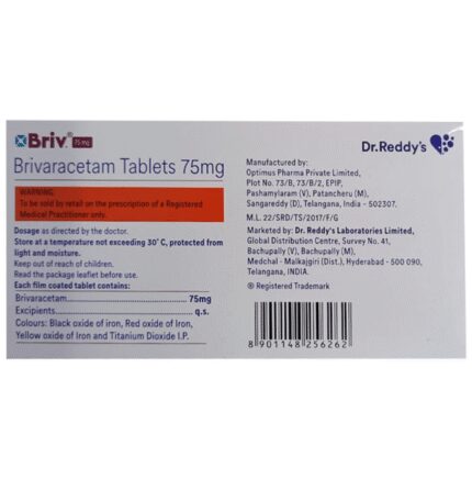 In Epilepsy/Seizures Briv + 75mg Tablet belongs to a group of medicines called anticonvulsants (or anti-epileptics). It works by slowing down electrical signals in the brain which cause seizures (fits). This medicine can be used to control the various types of seizures—myoclonic, partial-onset, and primary generalized tonic-clonic (or grand mal). It can also help reduce symptoms such as confusion, uncontrollable jerking movements, loss of awareness, and fear or anxiety. u003cbr>u003cbr>The medicine can allow you to do some activities that you would otherwise be forbidden or scared to do (such as swimming and driving). It can take a few weeks for this medicine to work (because the dose has to be increased slowly) and during this time you may still have seizures. You should continue taking it even if you feel well and are not having any seizures. Missing doses may trigger a seizure. Do not stop using this medicine until your doctor advises you.