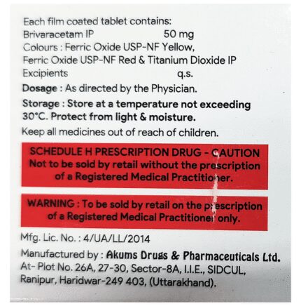 In Epilepsy/Seizures Brivacam 50mg Tablet belongs to a group of medicines called anticonvulsants (or anti-epileptics). It works by slowing down electrical signals in the brain which cause seizures (fits). This medicine can be used to control the various types of seizures—myoclonic, partial-onset, and primary generalized tonic-clonic (or grand mal). It can also help reduce symptoms such as confusion, uncontrollable jerking movements, loss of awareness, and fear or anxiety. u003cbr>u003cbr>The medicine can allow you to do some activities that you would otherwise be forbidden or scared to do (such as swimming and driving). It can take a few weeks for this medicine to work (because the dose has to be increased slowly) and during this time you may still have seizures. You should continue taking it even if you feel well and are not having any seizures. Missing doses may trigger a seizure. Do not stop using this medicine until your doctor advises you.