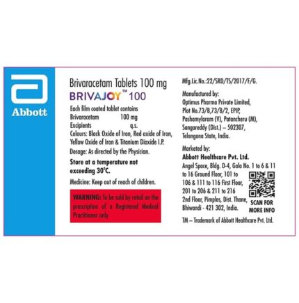 In Epilepsy/Seizures Brivajoy 100 Tablet belongs to a group of medicines called anticonvulsants (or anti-epileptics). It works by slowing down electrical signals in the brain which cause seizures (fits). This medicine can be used to control the various types of seizures—myoclonic, partial-onset, and primary generalized tonic-clonic (or grand mal). It can also help reduce symptoms such as confusion, uncontrollable jerking movements, loss of awareness, and fear or anxiety. u003cbr>u003cbr>The medicine can allow you to do some activities that you would otherwise be forbidden or scared to do (such as swimming and driving). It can take a few weeks for this medicine to work (because the dose has to be increased slowly) and during this time you may still have seizures. You should continue taking it even if you feel well and are not having any seizures. Missing doses may trigger a seizure. Do not stop using this medicine until your doctor advises you.