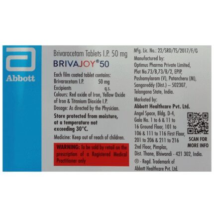 In Epilepsy/Seizures Brivajoy 50 Tablet belongs to a group of medicines called anticonvulsants (or anti-epileptics). It works by slowing down electrical signals in the brain which cause seizures (fits). This medicine can be used to control the various types of seizures—myoclonic, partial-onset, and primary generalized tonic-clonic (or grand mal). It can also help reduce symptoms such as confusion, uncontrollable jerking movements, loss of awareness, and fear or anxiety. u003cbr>u003cbr>The medicine can allow you to do some activities that you would otherwise be forbidden or scared to do (such as swimming and driving). It can take a few weeks for this medicine to work (because the dose has to be increased slowly) and during this time you may still have seizures. You should continue taking it even if you feel well and are not having any seizures. Missing doses may trigger a seizure. Do not stop using this medicine until your doctor advises you.