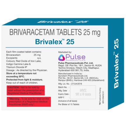 In Epilepsy/Seizures Brivalex 25mg Tablet belongs to a group of medicines called anticonvulsants (or anti-epileptics). It works by slowing down electrical signals in the brain which cause seizures (fits). This medicine can be used to control the various types of seizures—myoclonic, partial-onset, and primary generalized tonic-clonic (or grand mal). It can also help reduce symptoms such as confusion, uncontrollable jerking movements, loss of awareness, and fear or anxiety. u003cbr>u003cbr>The medicine can allow you to do some activities that you would otherwise be forbidden or scared to do (such as swimming and driving). It can take a few weeks for this medicine to work (because the dose has to be increased slowly) and during this time you may still have seizures. You should continue taking it even if you feel well and are not having any seizures. Missing doses may trigger a seizure. Do not stop using this medicine until your doctor advises you.