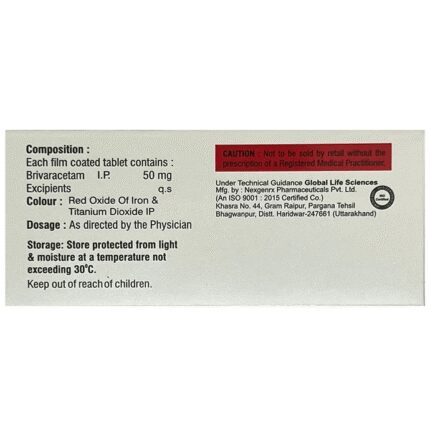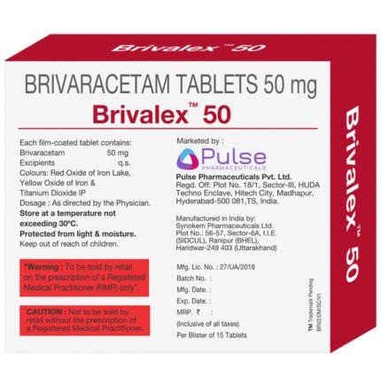 In Epilepsy/Seizures Brivalex 50mg Tablet belongs to a group of medicines called anticonvulsants (or anti-epileptics). It works by slowing down electrical signals in the brain which cause seizures (fits). This medicine can be used to control the various types of seizures—myoclonic, partial-onset, and primary generalized tonic-clonic (or grand mal). It can also help reduce symptoms such as confusion, uncontrollable jerking movements, loss of awareness, and fear or anxiety. u003cbr>u003cbr>The medicine can allow you to do some activities that you would otherwise be forbidden or scared to do (such as swimming and driving). It can take a few weeks for this medicine to work (because the dose has to be increased slowly) and during this time you may still have seizures. You should continue taking it even if you feel well and are not having any seizures. Missing doses may trigger a seizure. Do not stop using this medicine until your doctor advises you.