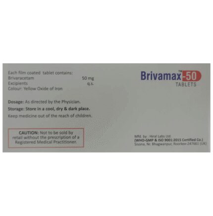 In Epilepsy/Seizures Brivamax 50 Tablet belongs to a group of medicines called anticonvulsants (or anti-epileptics). It works by slowing down electrical signals in the brain which cause seizures (fits). This medicine can be used to control the various types of seizures—myoclonic, partial-onset, and primary generalized tonic-clonic (or grand mal). It can also help reduce symptoms such as confusion, uncontrollable jerking movements, loss of awareness, and fear or anxiety. u003cbr>u003cbr>The medicine can allow you to do some activities that you would otherwise be forbidden or scared to do (such as swimming and driving). It can take a few weeks for this medicine to work (because the dose has to be increased slowly) and during this time you may still have seizures. You should continue taking it even if you feel well and are not having any seizures. Missing doses may trigger a seizure. Do not stop using this medicine until your doctor advises you.
