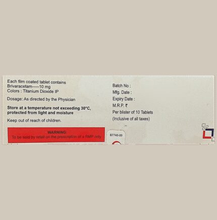 In Epilepsy/Seizures Brivanext 10 Tablet belongs to a group of medicines called anticonvulsants (or anti-epileptics). It works by slowing down electrical signals in the brain which cause seizures (fits). This medicine can be used to control the various types of seizures—myoclonic, partial-onset, and primary generalized tonic-clonic (or grand mal). It can also help reduce symptoms such as confusion, uncontrollable jerking movements, loss of awareness, and fear or anxiety. u003cbr>u003cbr>The medicine can allow you to do some activities that you would otherwise be forbidden or scared to do (such as swimming and driving). It can take a few weeks for this medicine to work (because the dose has to be increased slowly) and during this time you may still have seizures. You should continue taking it even if you feel well and are not having any seizures. Missing doses may trigger a seizure. Do not stop using this medicine until your doctor advises you.
