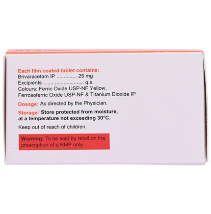 In Epilepsy/Seizures Brivee 25mg Tablet belongs to a group of medicines called anticonvulsants (or anti-epileptics). It works by slowing down electrical signals in the brain which cause seizures (fits). This medicine can be used to control the various types of seizures—myoclonic, partial-onset, and primary generalized tonic-clonic (or grand mal). It can also help reduce symptoms such as confusion, uncontrollable jerking movements, loss of awareness, and fear or anxiety. u003cbr>u003cbr>The medicine can allow you to do some activities that you would otherwise be forbidden or scared to do (such as swimming and driving). It can take a few weeks for this medicine to work (because the dose has to be increased slowly) and during this time you may still have seizures. You should continue taking it even if you feel well and are not having any seizures. Missing doses may trigger a seizure. Do not stop using this medicine until your doctor advises you.