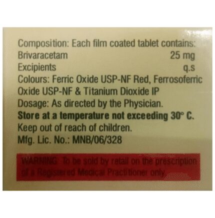 In Epilepsy/Seizures Brivetoin 25mg Tablet belongs to a group of medicines called anticonvulsants (or anti-epileptics). It works by slowing down electrical signals in the brain which cause seizures (fits). This medicine can be used to control the various types of seizures—myoclonic, partial-onset, and primary generalized tonic-clonic (or grand mal). It can also help reduce symptoms such as confusion, uncontrollable jerking movements, loss of awareness, and fear or anxiety. u003cbr>u003cbr>The medicine can allow you to do some activities that you would otherwise be forbidden or scared to do (such as swimming and driving). It can take a few weeks for this medicine to work (because the dose has to be increased slowly) and during this time you may still have seizures. You should continue taking it even if you feel well and are not having any seizures. Missing doses may trigger a seizure. Do not stop using this medicine until your doctor advises you.