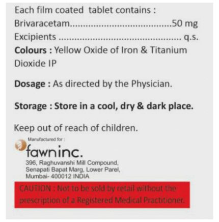 In Epilepsy/Seizures Brivrain 50mg Tablet belongs to a group of medicines called anticonvulsants (or anti-epileptics). It works by slowing down electrical signals in the brain which cause seizures (fits). This medicine can be used to control the various types of seizures—myoclonic, partial-onset, and primary generalized tonic-clonic (or grand mal). It can also help reduce symptoms such as confusion, uncontrollable jerking movements, loss of awareness, and fear or anxiety. u003cbr>u003cbr>The medicine can allow you to do some activities that you would otherwise be forbidden or scared to do (such as swimming and driving). It can take a few weeks for this medicine to work (because the dose has to be increased slowly) and during this time you may still have seizures. You should continue taking it even if you feel well and are not having any seizures. Missing doses may trigger a seizure. Do not stop using this medicine until your doctor advises you.