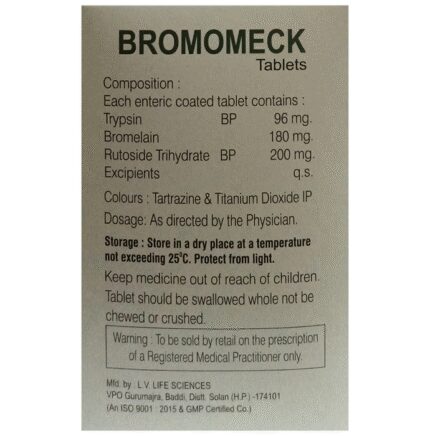 In Pain relief Bromomeck Tablet is a combination of medicines used for relief of pain, inflammation, and swelling in conditions that may occur due to trauma, surgery or everyday life. It may also be used to provide relief in degenerative and inflammatory conditions that affect muscles and joints such as rheumatoid arthritis and osteoarthritis. It promotes speedy recovery due to its anti-inflammatory and antioxidant properties. Take it as it is prescribed to get the most benefit. This will help you to go about your daily activities more easily and have a better, more active, quality of life.
