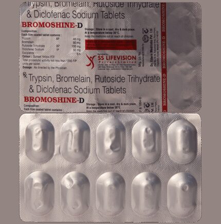 In Pain relief Bromoshine DS 180mg/96mg/200mg Tablet is a combination of medicines used for relief of pain, inflammation, and swelling in conditions that may occur due to trauma, surgery or everyday life. It may also be used to provide relief in degenerative and inflammatory conditions that affect muscles and joints such as rheumatoid arthritis and osteoarthritis. It promotes speedy recovery due to its anti-inflammatory and antioxidant properties. Take it as it is prescribed to get the most benefit. This will help you to go about your daily activities more easily and have a better, more active, quality of life.