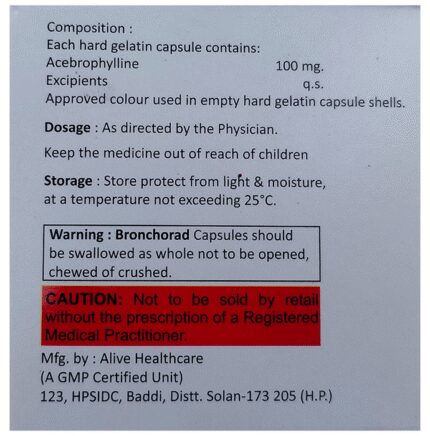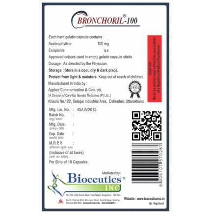 In Treatment of Bronchitis Bronchitis leads to chest congestion and wheezing. Bronchoril 100mg Capsule relieves symptoms of bronchitis by clearing congestion and relaxing airways.