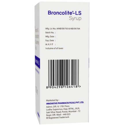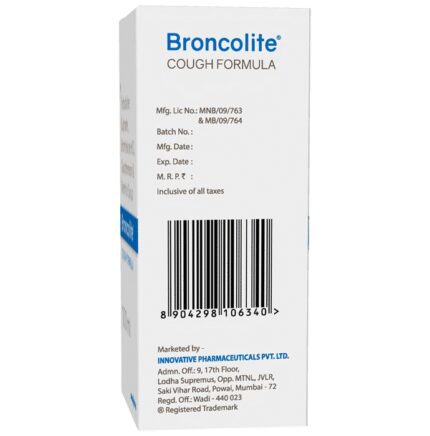 In Treatment of Cough A cough is a sudden, forceful expulsion of air that helps clear any mucus or irritant in the throat or airways. If it happens more frequently, due to an underlying disease or an allergy, it can be bothersome. Broncolite Syrup helps to loosen thick mucus, making it easier to cough out. This makes it easier for air to move in and out. It will also relieve allergy symptoms like watery eyes, sneezing, runny nose, or throat irritation and help you carry out your daily activities more easily. u003cbr>u003cbr>This medicine is safe and effective. It usually starts to work within a few minutes and the effects can last up to several hours. Take it as prescribed by the doctor. Do not stop using it unless you are advised to by your doctor. Taking this medicine enables you to live your life more freely without worrying so much about things that set off your symptoms.