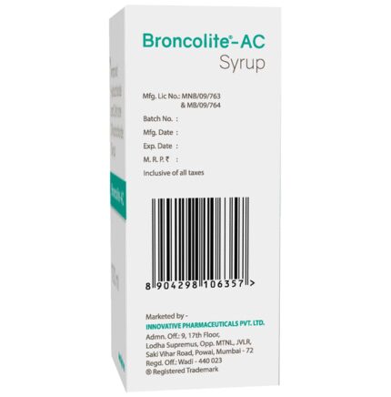 In Treatment of Cough Cough is a sudden, forceful expulsion of air that helps clear any mucus or irritant in the throat or airways. If it happens more frequently, due to an underlying disease or an allergy, it can be bothersome. Broncolite-AC Syrup helps to loosen thick mucus, making it easier to cough out. This makes it easier for air to move in and out. It will also relieve allergy symptoms like watery eyes, sneezing, runny nose or throat irritation and help you carry out your daily activities more easily. u003cbr>This medicine is safe and effective. It usually starts to work within a few minutes and the effects can last up to several hours. Take it as prescribed by the doctor. Do not stop using it unless you are advised to by your doctor. Taking this medicine enables you to live your life more freely without worrying so much about things that set off your symptoms.