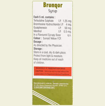 In Treatment of Cough A cough is a sudden, forceful expulsion of air that helps clear any mucus or irritant in the throat or airways. If it happens more frequently, due to an underlying disease or an allergy, it can be bothersome. Bronqor Syrup helps to loosen thick mucus, making it easier to cough out. This makes it easier for air to move in and out. It will also relieve allergy symptoms like watery eyes, sneezing, runny nose, or throat irritation and help you carry out your daily activities more easily. u003cbr>u003cbr>This medicine is safe and effective. It usually starts to work within a few minutes and the effects can last up to several hours. Take it as prescribed by the doctor. Do not stop using it unless you are advised to by your doctor. Taking this medicine enables you to live your life more freely without worrying so much about things that set off your symptoms.