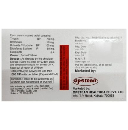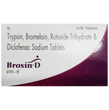 In Pain relief Brosin-D Tablet relieves pain, reduce swelling and ease inflammation in conditions like rheumatoid arthritis, osteoarthritis and ankylosing spondolytis. It also gives relief from muscle and back pain, toothache, or pain in the ear and throat. It works by reducing substances in the body that causes pain and swelling. Take it as prescribed to get the most benefit. This will help you to go about your daily activities more easily and have a better, more active, quality of life.
