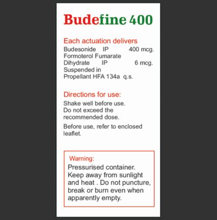 In Treatment of Chronic obstructive pulmonary disease (COPD) Budefine 6mcg/400mcg Inhaler helps the airways in your lungs stay open. It relaxes the muscles of these airways. This makes it easier for air to get in and out. It will relieve symptoms such as tightness in your chest, shortness of breath, wheezing and coughing and help you carry out your daily activities more easily. This medicine is safe and effective. It usually starts to work within a few minutes and the effects can last up to several hours. Do not stop using it unless you are advised to by your doctor.