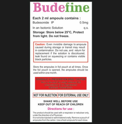 In Asthma Budelent 0.5 Respules (2ml Each) is a combination medicine that works by reducing and preventing swelling and inflammation in your lungs. This medicine does not stop an asthma attack that has already started, but prevents its symptoms, such as tightness in your chest, wheezing, breathlessness, and coughing. This allows you to carry out your daily activities more easily and confidently. Keep taking it regularly as prescribed even if you do not have any symptoms, as it may take a few weeks for this medicine to show full effects. Stopping it abruptly may bring back the symptoms.