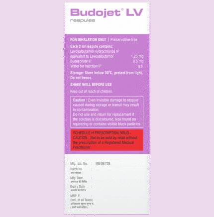 In Treatment of Asthma In individuals with asthma, Budojet LV 1.25mg/0.5mg Respules helps prevent and control symptoms, such as wheezing, shortness of breath, and chest tightness. It provides quick relief during acute asthma attacks by rapidly opening the airways and reducing inflammation. When the symptoms are controlled effectively, it helps decrease dependence on emergency medicines, enhance sleep quality, and minimize hospital visits, all contributing to a higher quality of life.