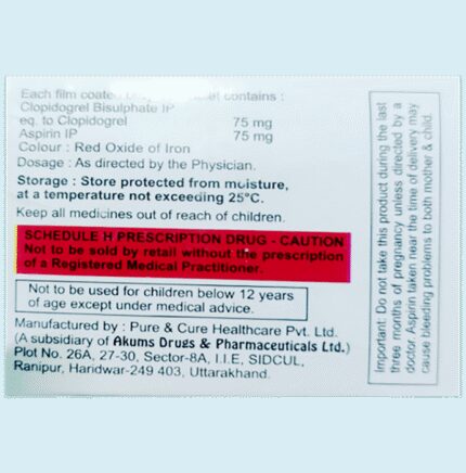 In Prevention of heart attack and stroke Cafidogrel AS 75 Tablet is a combination of two antiplatelet medicines or blood thinners. It prevents blood from clotting inside the veins and arteries. This helps the blood flow freely around your body thereby preventing a heart attack or stroke (or deep vein thrombosis or pulmonary embolism). Both these medicines together prevent the formation of blood clots and also prevent the existing ones from growing bigger in size. Take it regularly and make appropriate lifestyle changes (such as eating healthy and staying active) to maximize the effectiveness of this medicine. Keep taking it even if you feel well.