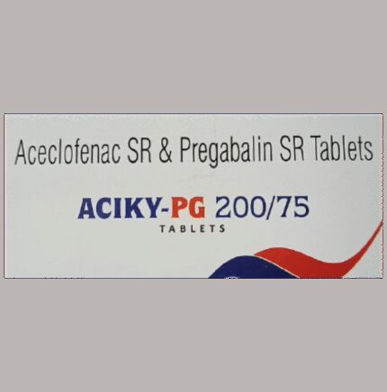 Aciky-PG 200/75 Tablet SR is a pain-relieving medicine. It is used in the treatment of neuropathic pain. It calms the damaged or overactive nerves by acting on the brain, thereby decreasing the sensation of pain. This way it improves your mood and reduces tiredness that can be caused by the pain. Aciky-PG 200/75 Tablet SR should be taken with food. This will prevent you from getting an upset stomach. You should take it regularly as advised by your doctor. Your doctor may change the dose and time between doses according to your pain level and your needs. Do not take more or use it for longer duration than recommended by your doctor.Some of the common side effects of this medicine include nausea, vomiting, indigestion, stomach pain, diarrhea, loss of appetite, and heartburn. If any of these side effects bother you or do not go away with time, you should let your doctor know. Your doctor may help you with ways to reduce or prevent these side effects by prescribing an alternative medicine or adjusting the dose.The medicine may not be suitable for everybody. Before taking it, let your doctor know if you have any problems with your heart, kidneys, liver, or have stomach ulcers. To make sure it is safe for you, let your doctor know about all the other medicines you are taking. Pregnant and breastfeeding mothers should first consult their doctors before using this medicine.